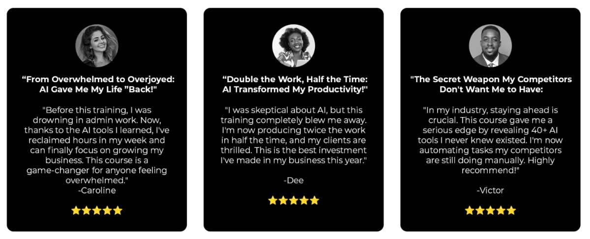 AI Gives You a Competitive Edge: While others are stuck doing things the old way, you’ll be using cutting-edge technology to outpace them.